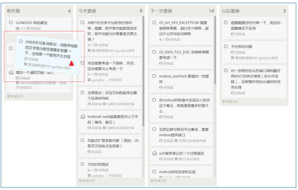 任務看板里出現(xiàn)的任務均是操作者需要處理的任務,看板的目的在給這些要處理的任務簡單做一個計劃,比如A任務今天做,B任務下一步做,C任務以后做,不需要你明確到具體日期只是做一個大概的規(guī)劃。因此在任務看板中我們看到的是4個泳道。