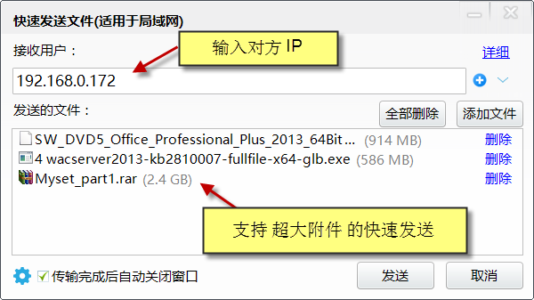 5、提供局域網(wǎng)內(nèi)點(diǎn)對點(diǎn)文件傳輸功能(也可以用于共享文件)